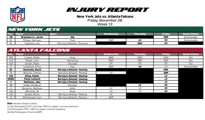 London is a big loss for the Falcons, and Lindstrom would arguably be an even bigger loss, but he'll probably play too.