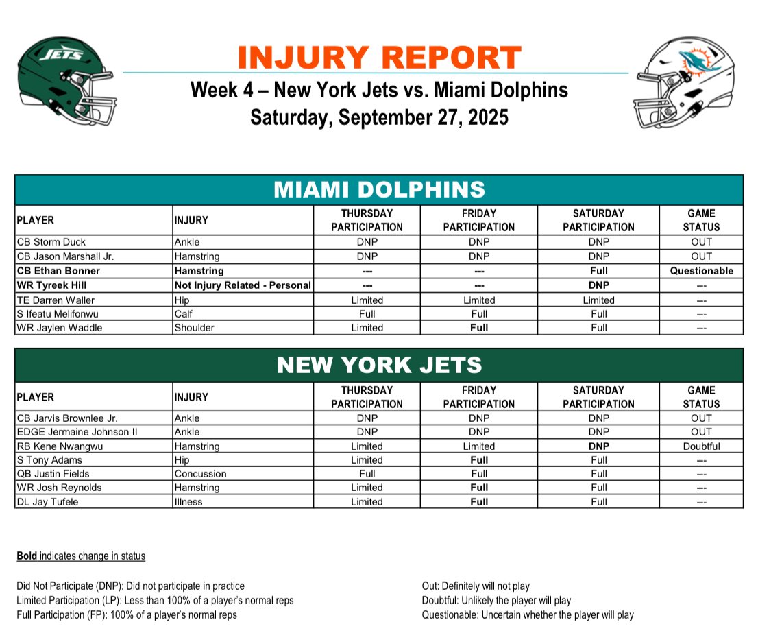 Without Johnson, the Jets could keep the same four defensive end rotation as they had last week but the improved health in the secondary and Fields' return could mean there is room to elevate someone like Eric Watts to add depth there.