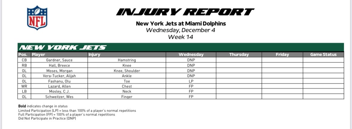 In roster news, the Jets re-signed guard Zack Bailey to the practice squad. He already spent a few weeks there before the bye.