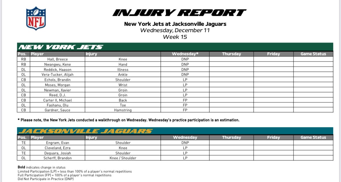 Gardner will play this weekend and the Jets are hopeful for Vera-Tucker and Nwangwu. Reddick is just ill so presumably he will be available.