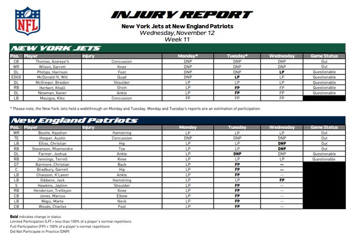 New England ruled four our with Boutte perhaps the biggest loss. The rest, and both of their questionable players, are backups.