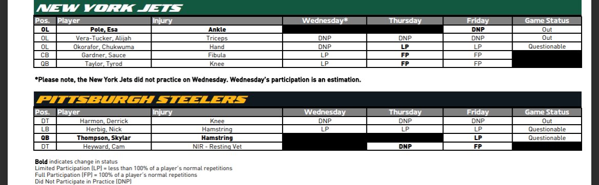 Heyward was coy about his status as he comes to terms with his contractual situation but it seems unlikely the Jets would be fortunate enough to face a Steelers front that was missing two of the three starters.