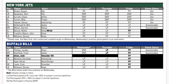 Wilson had been a doubt due to his arm injury but confirmed to reporters that he will play against the Bills.