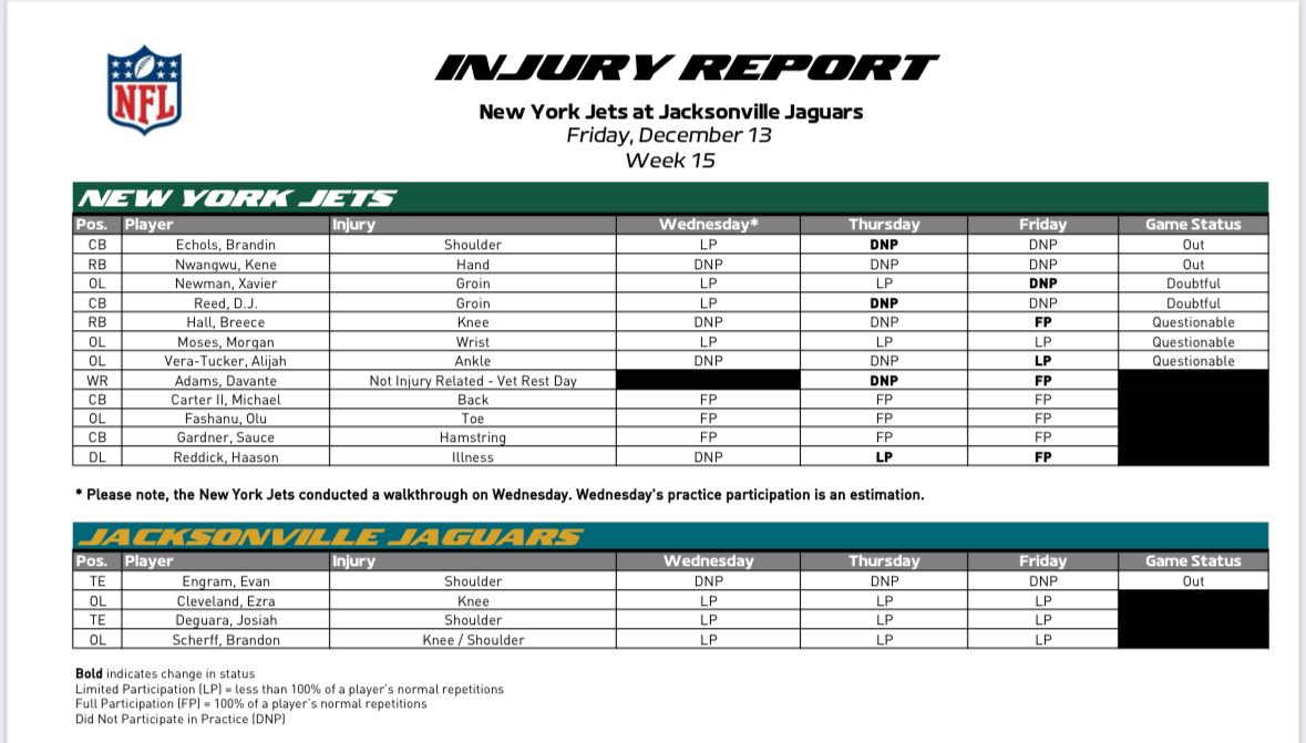 Jeff Ulbrich was hopeful Reed cam play but the Jets will be without him and Echols and usually can't rely on Carter to play much so they'll be shorthanded back there once again.