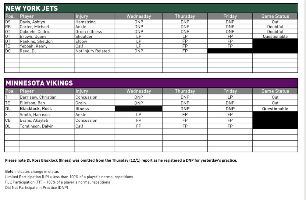 Rankins being back is good news and the Jets may also activate George Fant this weekend, although he'll probably just serve as emergency cover if they do. (Brown plays every week despite always being questionable). The Jets would also need to make a roster move to make room for Fant.
