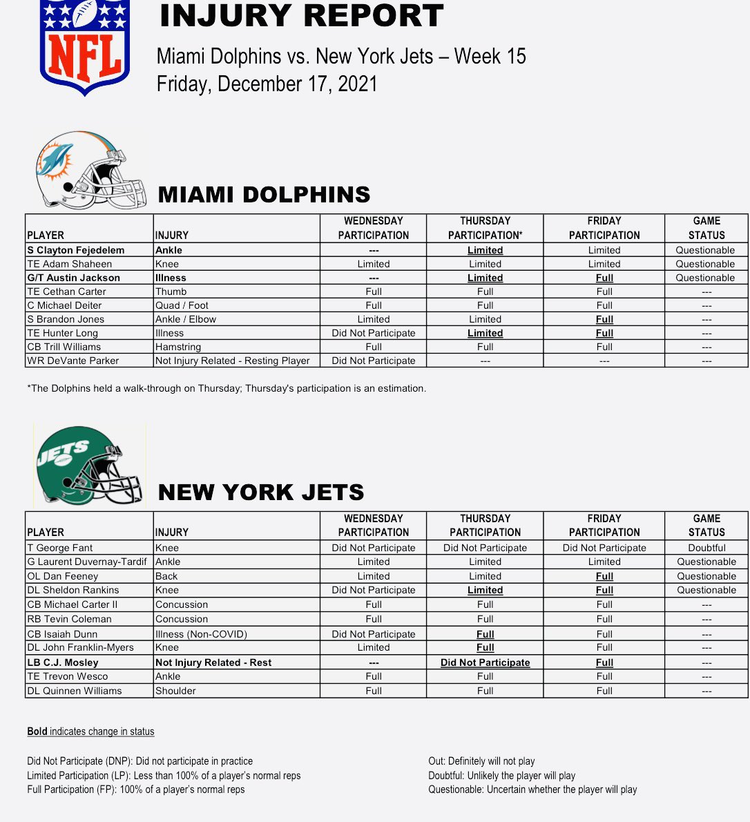 Here's this week's final injury report: