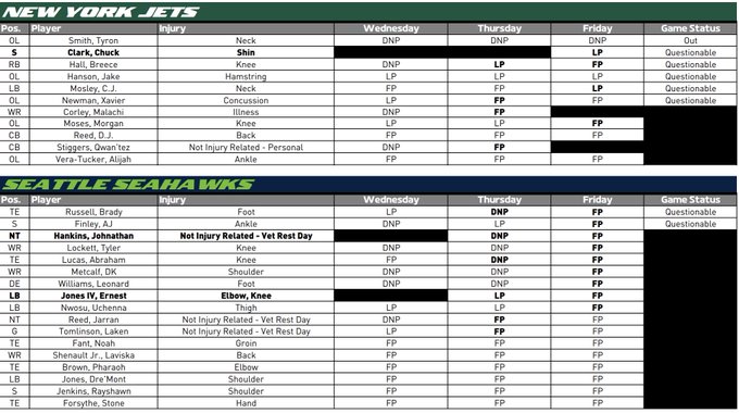 Hall returning now seems likely but now Clark's availability is in doubt while Seattle is basically at full strength.