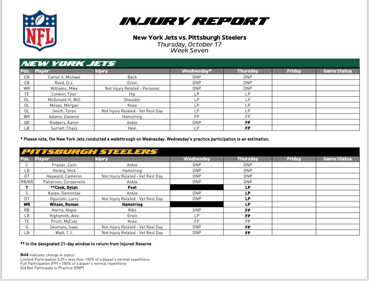 Nothing has changed really. It seems increasingly likely (Mike) Williams has played his last game as a Jet and that Russell Wilson will start on Sunday.