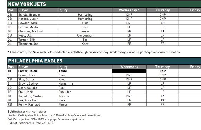 Carter missing practice for the Eagles is interesting. The rookie has been dominant so far this season.