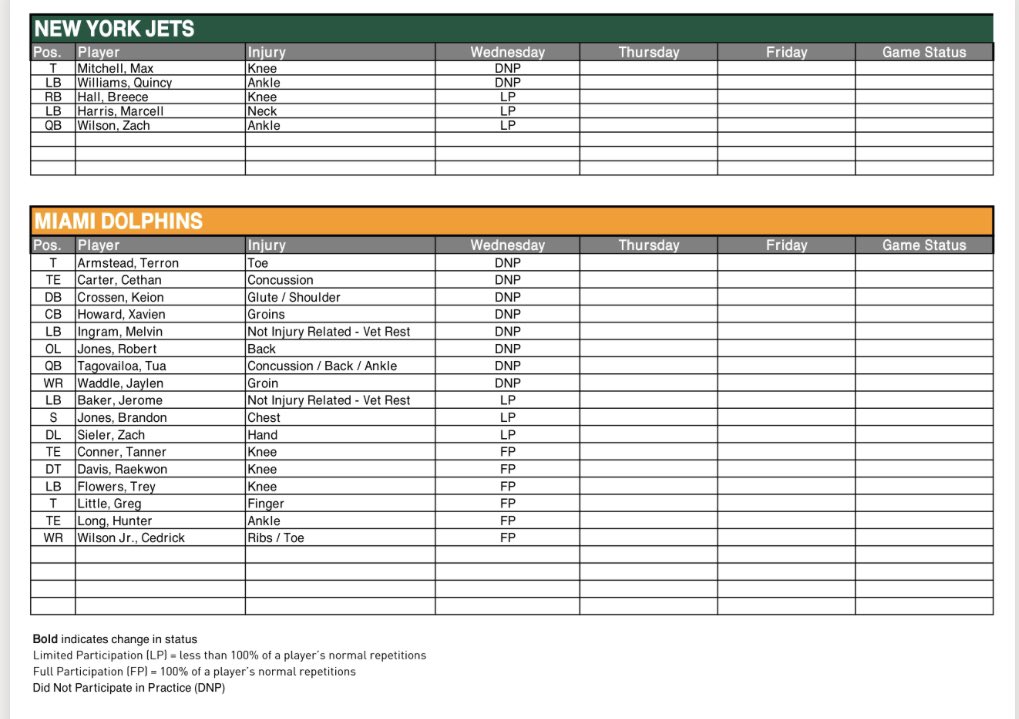 As for Miami, you can see how banged up they are. They've confirmed that Byron Jones won't be activated from the PUP list this week. Tua Tagavailoa is obviously out and Xavien Howard will be day-to-day all week.