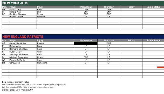 The second injury report of New England week is out: