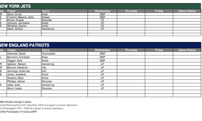 Andrews is probably the biggest concern for New England, who are reportedly planning to start Mac Jones rather than Bailey Zappe on Sunday.