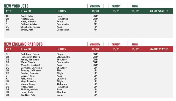 On the practice squad, the Jets protected Noah Dawkins as cover for Mosley and Jarrod Wilson as cover for Maye, but did not protect Kenny Yeboah this week. However, he might be active again as Tyler Kroft is dealing with a back issue that sounds like it could be a lingering issue.