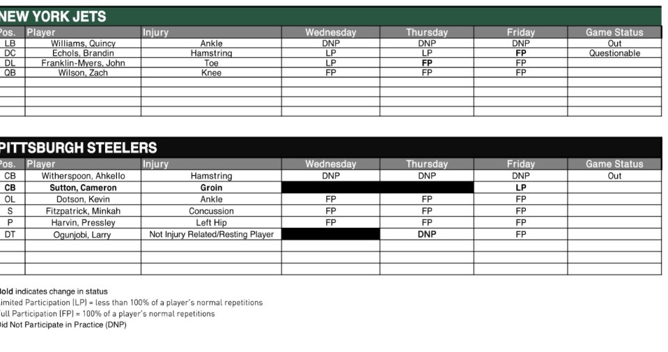 If Echols can't go, the Jets will presumably make Bryce Hall active this week and move Jeff Smith back into a full-time gunner role.