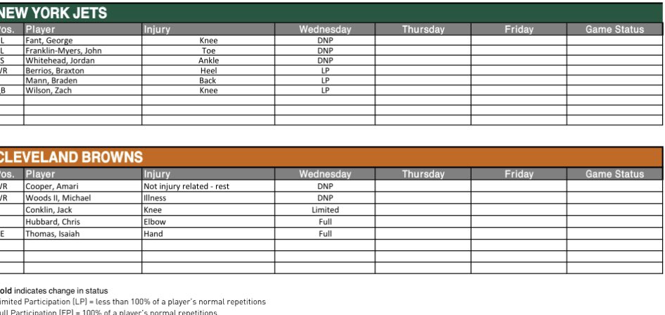 The first injury report of Browns week is here and a few key players missed out with Jordan Whitehead considered questionable for Sunday: