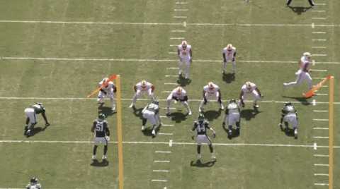 Baron didn't make much of an impact as a pass rusher, as he was in the game for 25 snaps with just over half of them being pass rush attempts but was only credited with one pressure. Probably his best rush came against the right tackle, who he bull rushed back to force Baker Mayfield to escape the pocket and throw a third down incompletion in the red zone.