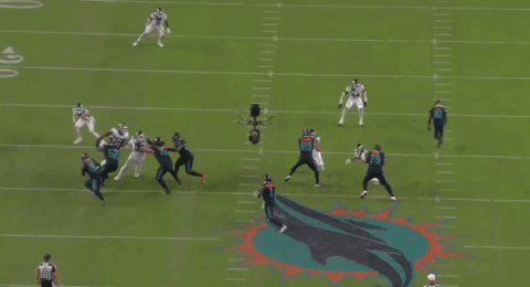 His only other tackle apart from that one came on a play where Miami ran for an eight yard gain. There was also this play where he overpursued and missed a chance to tackle Tyreek Hill short of the marker on 3rd down, although he got away with this one because Will McDonald drew a holding penalty.