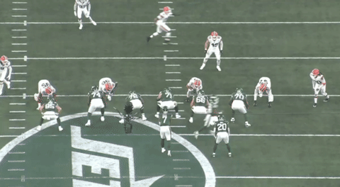 There was one bad mistake by Membou which saw Hall lose big yardage on a pitch as Membou ran right past a defensive player pulling to his right and then realized he had nobody to block.